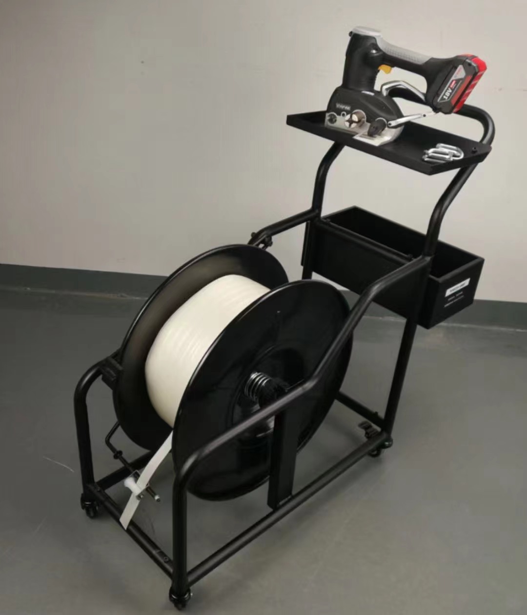 带盘车,是使用手提式打包机时的重要辅助工具,让杂乱的打包环境变得规范、整洁。
