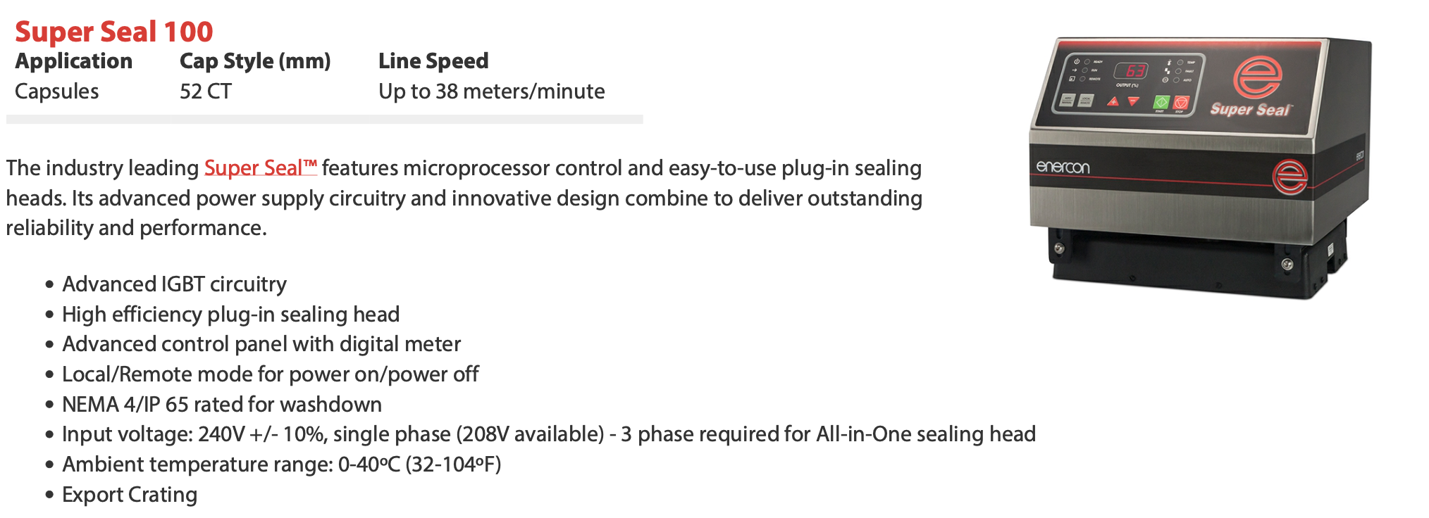 美国ENERCON电磁感应铝箔封口机SUPER SEAL 100配件