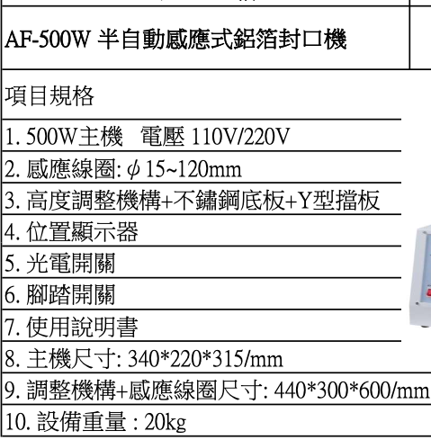 台湾达迅AF-500W半自动感应式铝箔封口机
