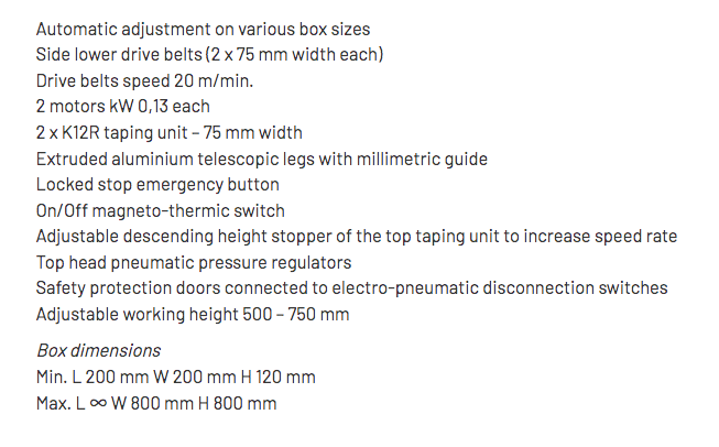 SM48和SM481是可随意调节的自动封口机。得益于顶部和底部传动带以及K12R胶带装置,它们可以完美地密封盒子。机器的调整和使用直观、简单、快速。